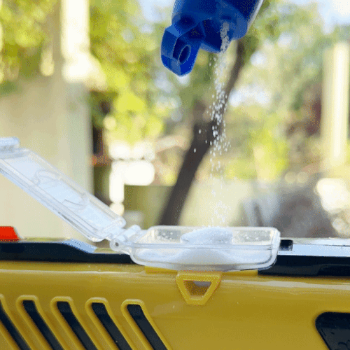 Simply add regular granulated table salt to the hopper (holds up to 80 blasts)